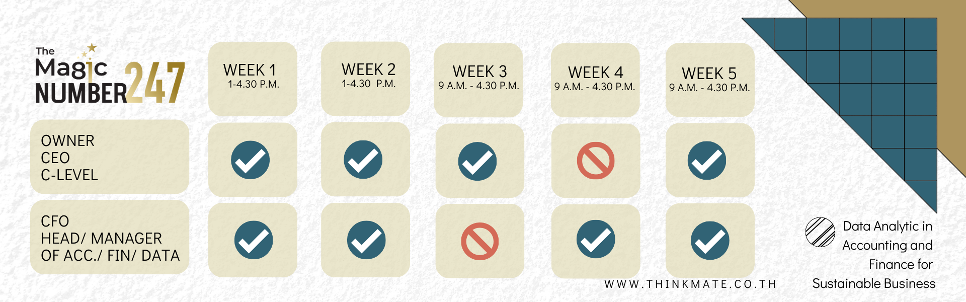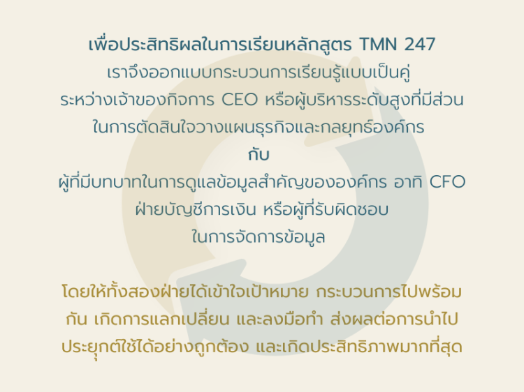 2) กลุ่มของผู้ที่ดูแลเรื่องข้อมูลตัวเลข บัญชีและการเงิน เช่น CFO/ หัวหน้าฝ่าย หรือผู้จัดการด้านบัญชีการเงิน และผู้ที่เกี่ยวข้องกับข้อมูลของบริษัท